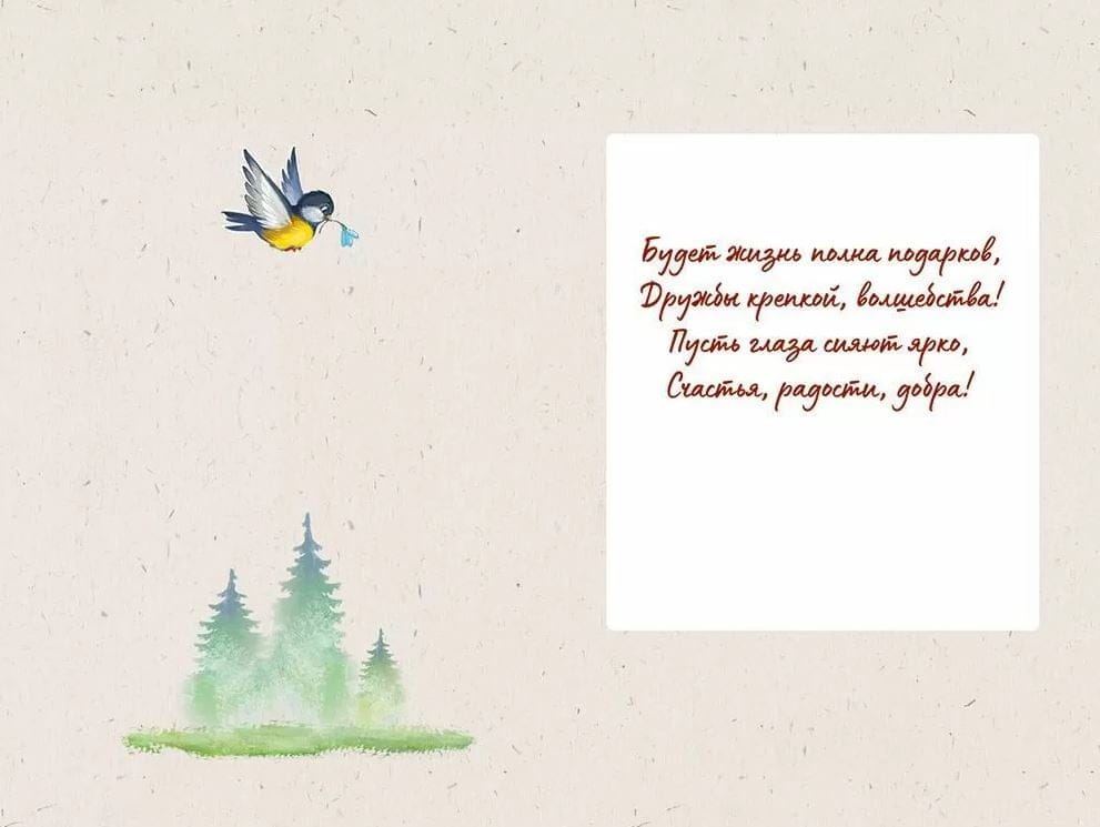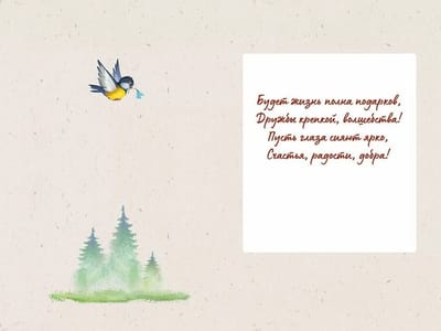 Поздравительная открытка с текстом на развороте.