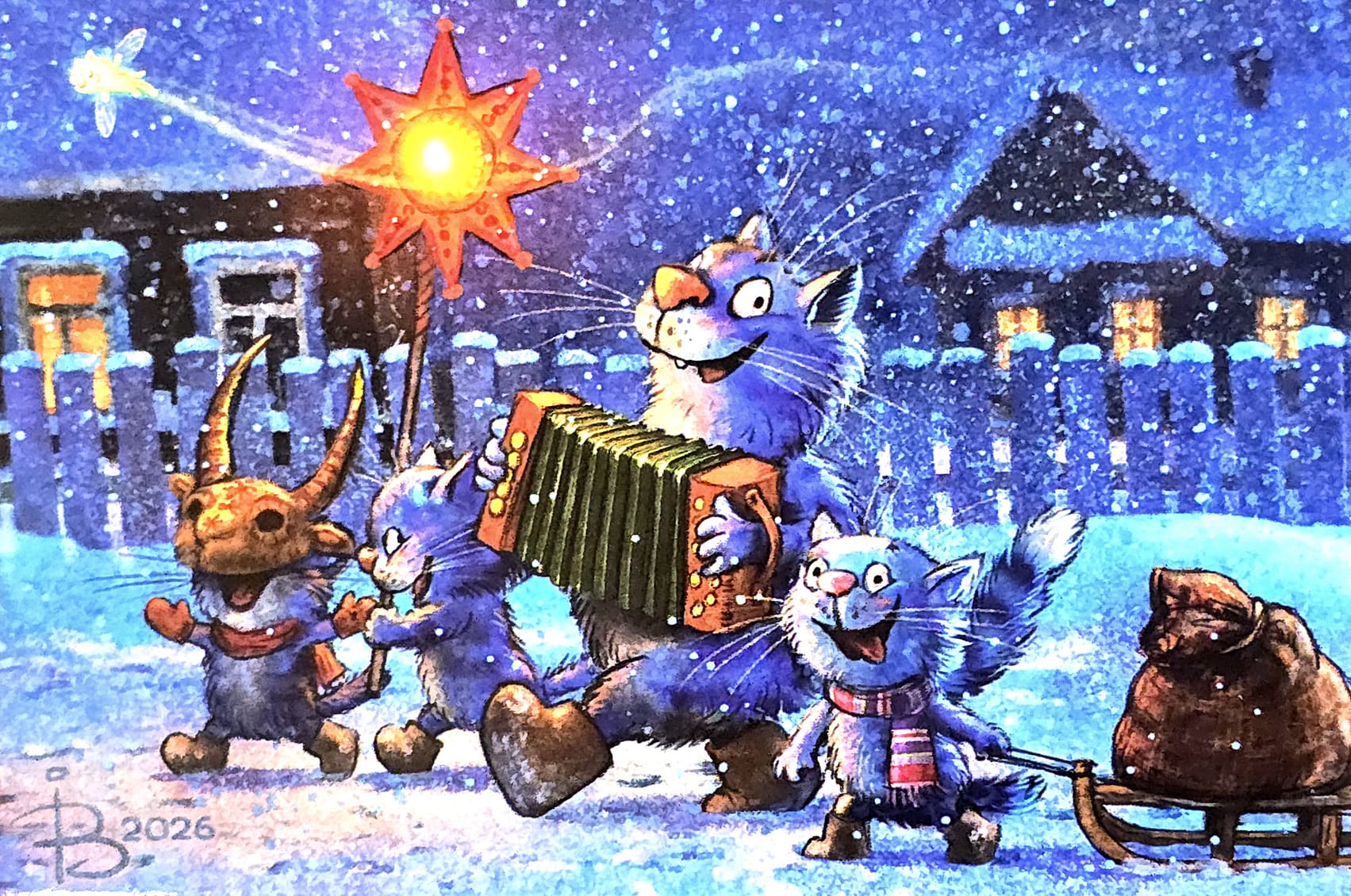 Открытка. Синие коты. Коляды