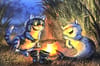 Открытка. Синие коты. Коты у костра