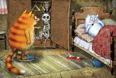 Открытка. Синие коты. Любовник в шкафу