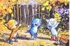 Открытка. Синие коты. Прыжки через скакалку