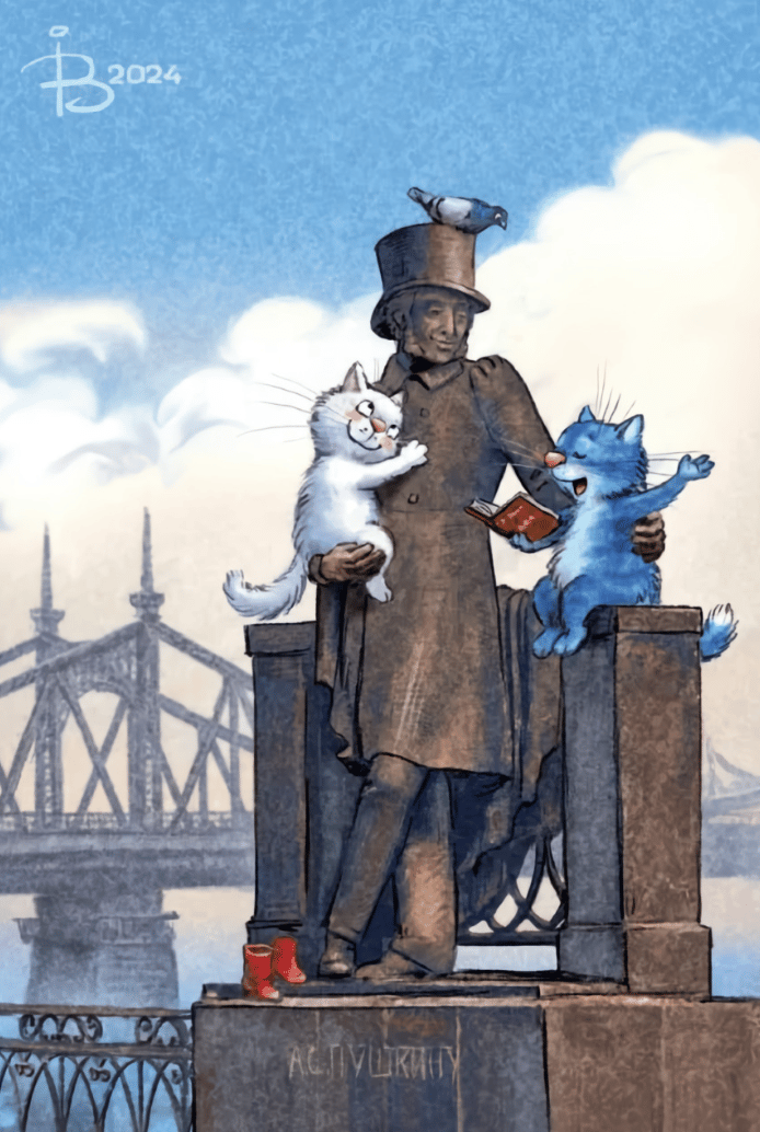 Открытка. Синие коты. Пушкин