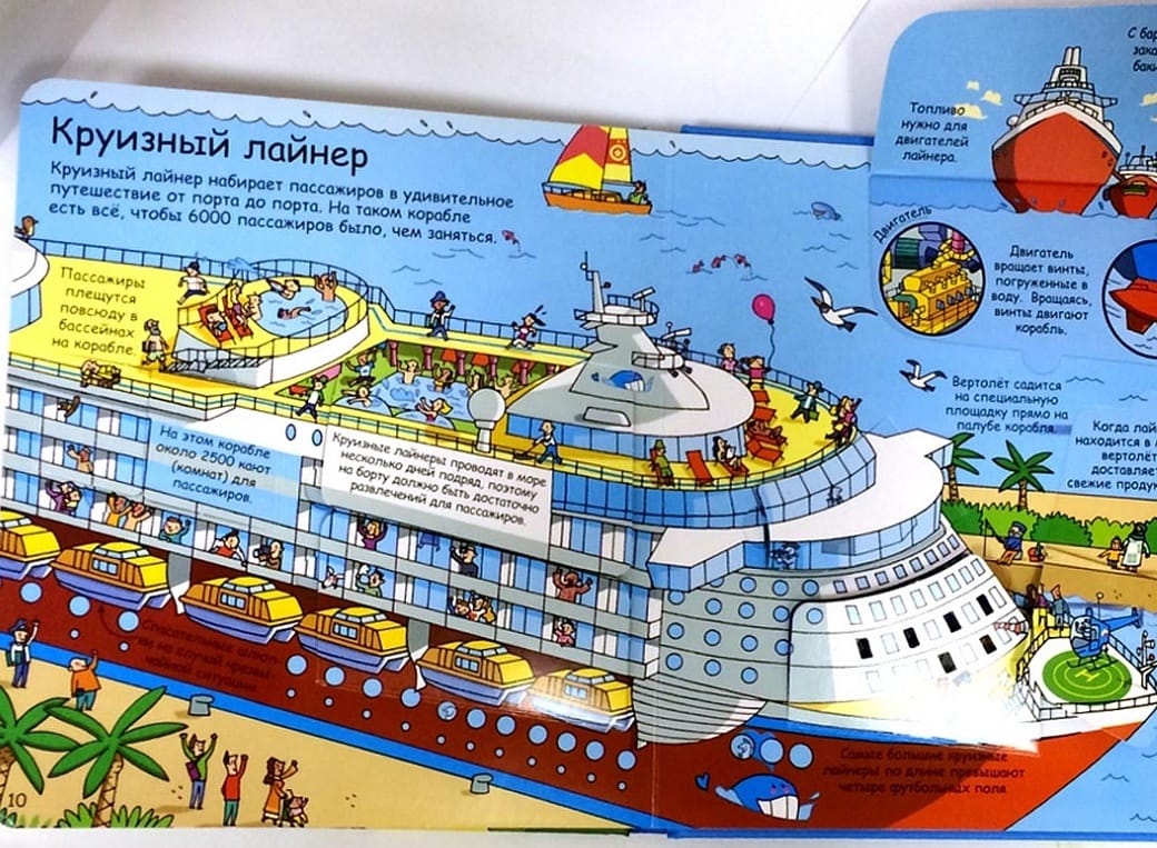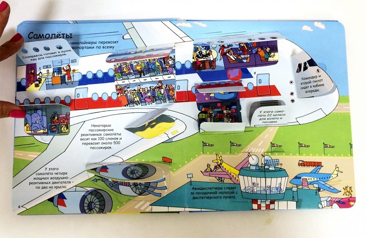 Яркие и детальные иллюстрации из мира техники, а также 60 створок, за которыми прячутся факты о различном транспорте.