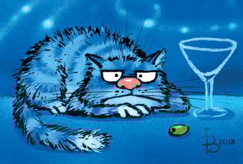 Открытка. Синие коты. Грустный кот