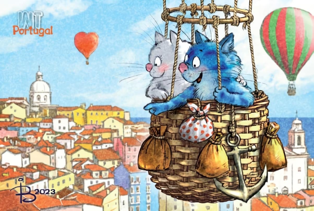 Открытка. Синие коты. Коты путешествуют. Португалия