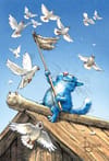 Открытка. Синие коты. Любовь и голуби