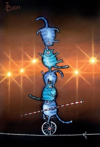 Открытка. Синие коты. Цирковые коты