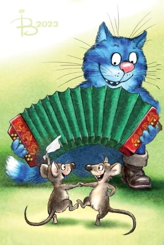 Красивая и забавная почтовая открытка с синими котами обязательно понравится получателю, поскольку рисунки Ирины Зенюк очень милые и продуманы до мелочей.