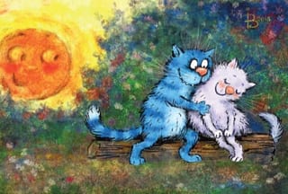Открытка. Синие коты. Свидание на закате