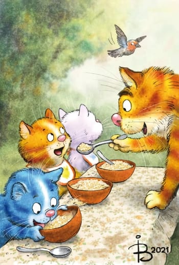 Открытка. Синие коты. Утренняя каша