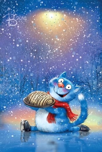 Красивая и забавная почтовая открытка с синими котами обязательно понравится получателю, поскольку рисунки Ирины Зенюк очень милые и продуманы до мелочей.