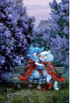 Красивая и забавная почтовая открытка с синими котами обязательно понравится получателю, поскольку рисунки Ирины Зенюк очень милые и продуманы до мелочей.