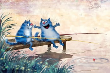 Открытка. Синие коты. Вот такая рыба!
