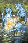 Открытка. Синие коты. Золотая рыбка