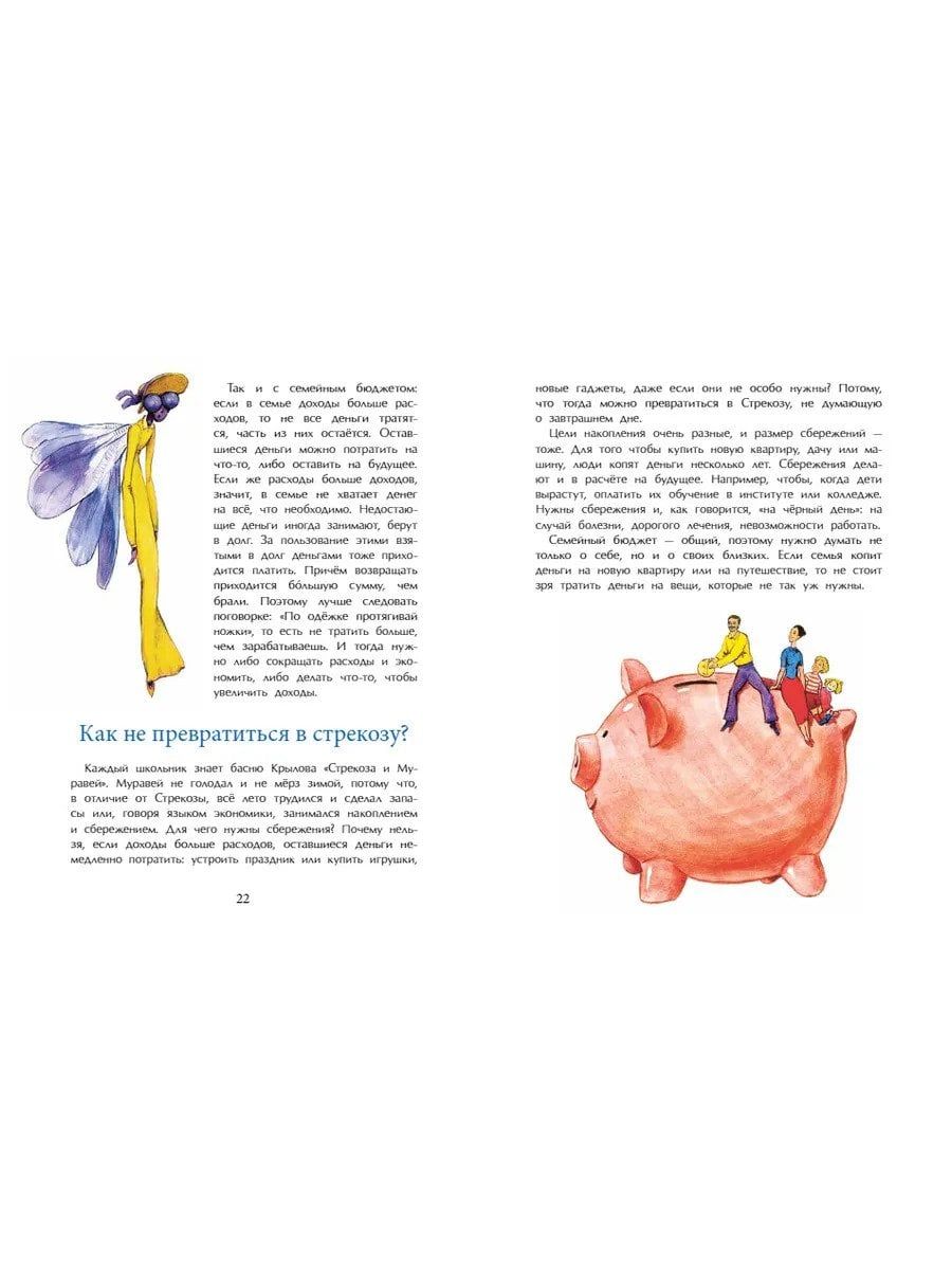 Что такое бюджет, вклад, кредит? Как свести расходы и доходы? Зачем нужны банки? Эта книжка расскажет об истории появления денег, покажет, как работает экономика, и даст ребёнку первые знания о том, как грамотно обращаться с собственными деньгами.