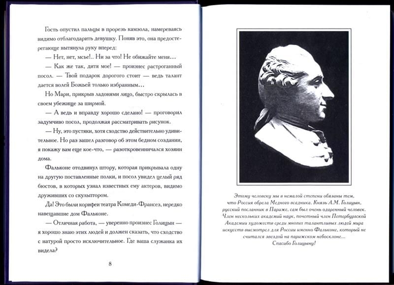 Героев этой книги роднит неугасимая надежда прожить отпущенный срок не зря, без боязни неизбежных неприятностей, горестей, разочарований. И с верой в прекрасное, что ожидает каждого человека на этой земле. Пусть ненадолго, но неизбежно... В книге пять исторических глав, каждая из которых посвящена яркой личности и неординарной судьбе: это скульптор Этьен Фальконе и его помощница Мария Колло, создавшие легендарный памятник Петру Первому - Медный Всадник; светлейший князь Григорий Александрович Потемкин; граф Николай Николаевич Муравьев-Амурский, чьими трудами в состав Российской Империи вошли территории Дальнего Востока и Амурского края; баронесса Варвара Ивановна Икскуль, возглавившая общину сестер милосердия в годы Первой Мировой войны; и наконец знаменитая русская певица, исполнительница романсов Анастасия Дмитриевна Вяльцева…