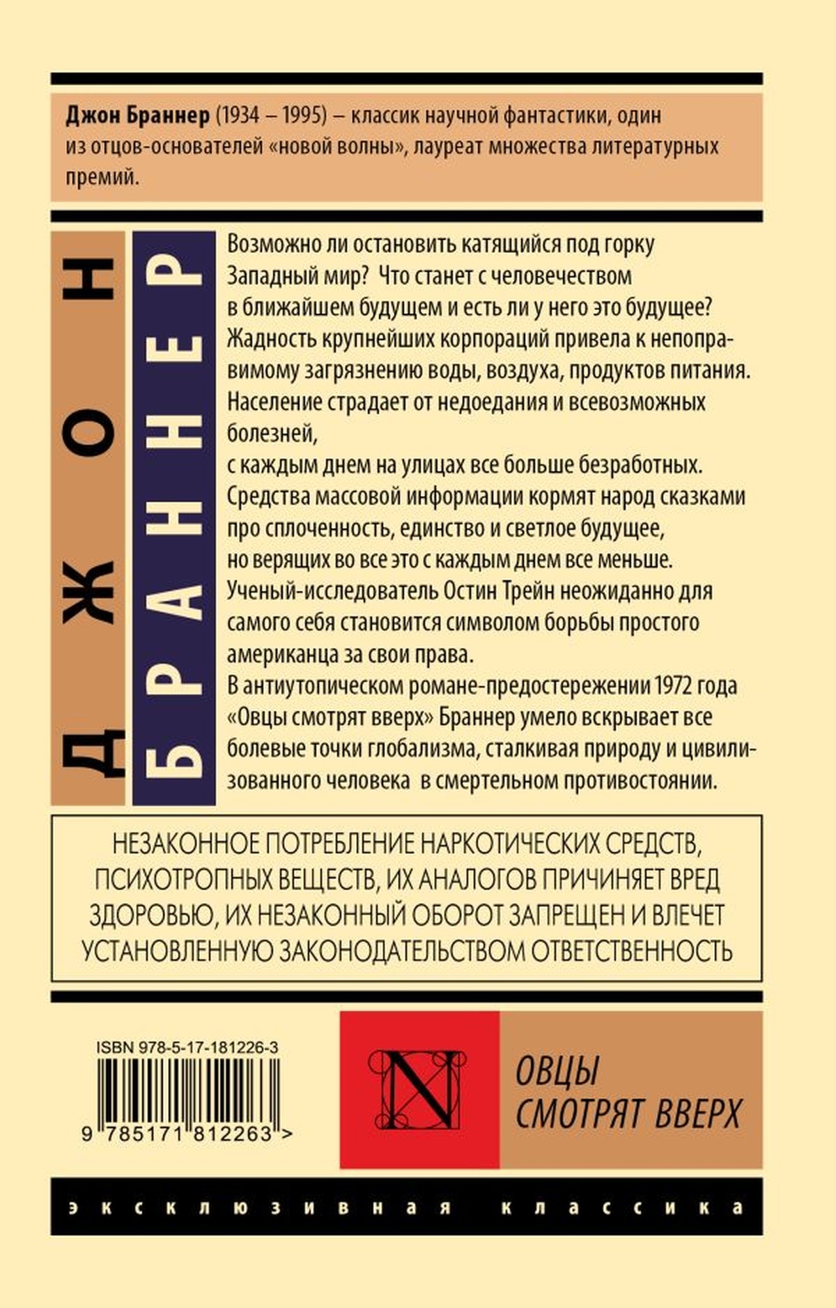 В антиутопическом романе-предостережении 1972 года «Овцы смотрят вверх» Браннер умело вскрывает все болевые точки глобализма, сталкивая природу и цивилизованного человека в смертельном противостоянии.