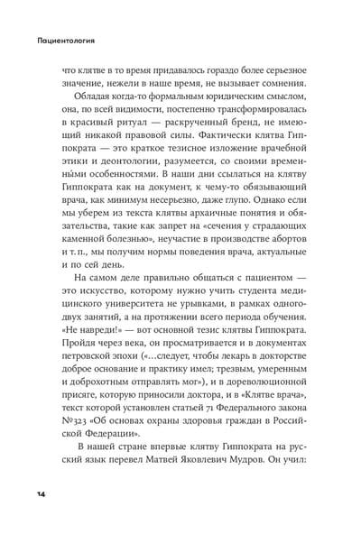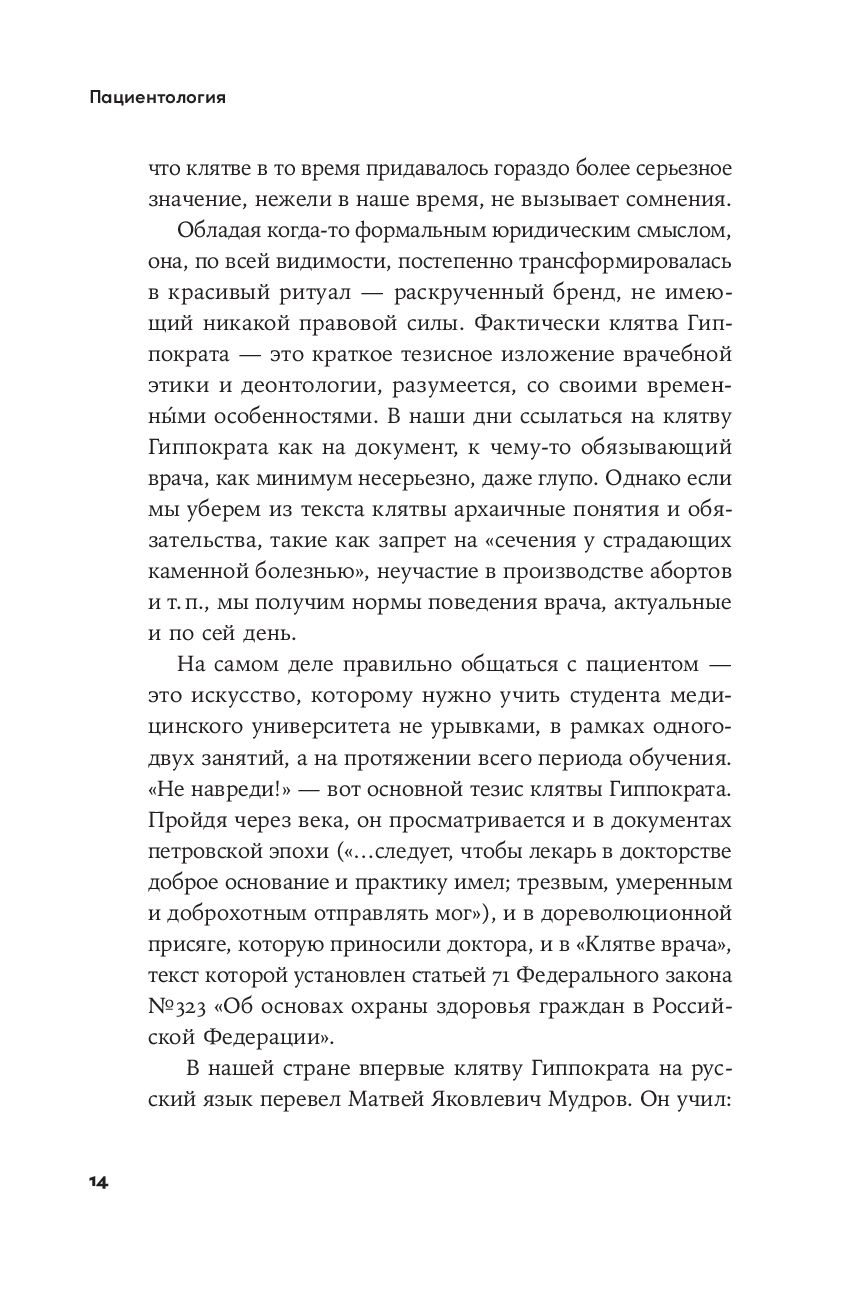 Книга судмедэксперта Алексея Решетуна, автора бестселлера «Вскрытие покажет», — ироничный путеводитель по сложному миру взаимоотношений врача и пациента. Автор приглашает взглянуть на привычные ситуации, с которыми мы сталкиваемся в поликлиниках и больницах, с неожиданной стороны. Опираясь на личный опыт и реальные истории своих коллег, он с юмором и любовью рассказывает о главных героях книги — пациентах: опоздунах, паникерах, ждунах и чудиках. Вы также узнаете, почему интернет не лучший советчик в вопросах лечения, к чему приводит страх перед стоматологами и чего не стоит делать в очереди к терапевту. Книга «Пациентология» будет интересна и тем, кто хотя бы раз в жизни обращался к врачу, и тем, кто носит белые халаты.
