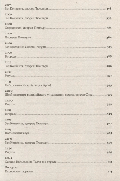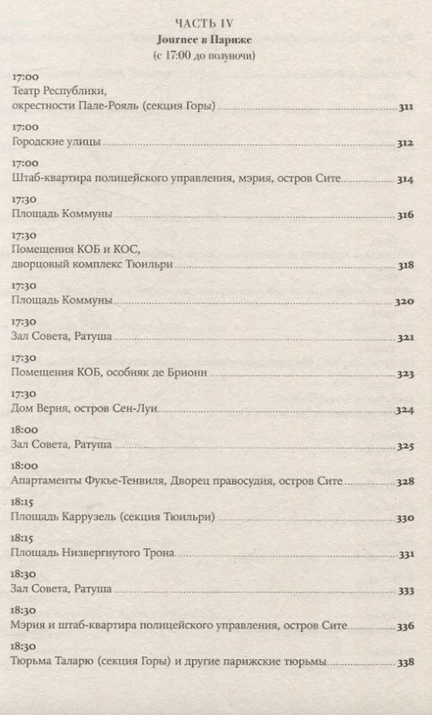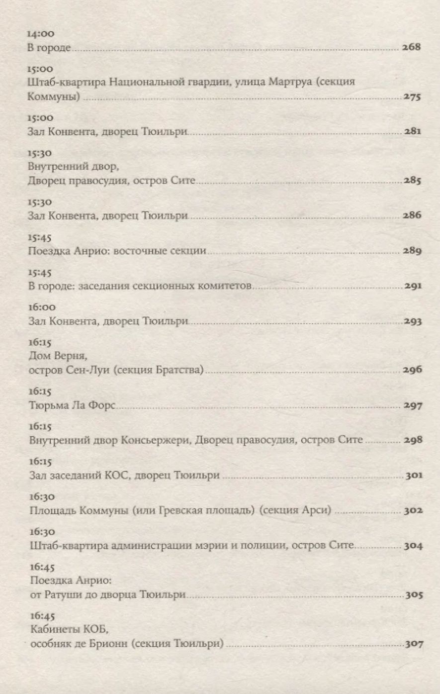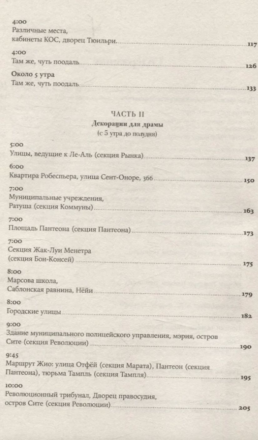 Увлекательная, великолепно выстроенная, исключительно информативная и, наконец, написанная остроумным автором, эта книга — настоящая «машина времени»: перед вами пройдет головокружительно динамичная серия сцен, разворачивающихся в разных местах Парижа и складывающихся в живой репортаж. Лезвие гильотины отсекает головы одну за другой, часовая стрелка бежит, заговоры возникают и лопаются, сотни действующих лиц совершают героические и фарсовые поступки и вынужденно импровизируют — и никто не знает, кому суждено выжить.