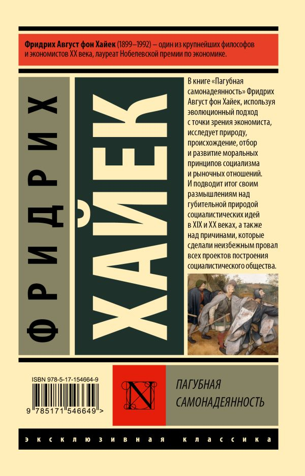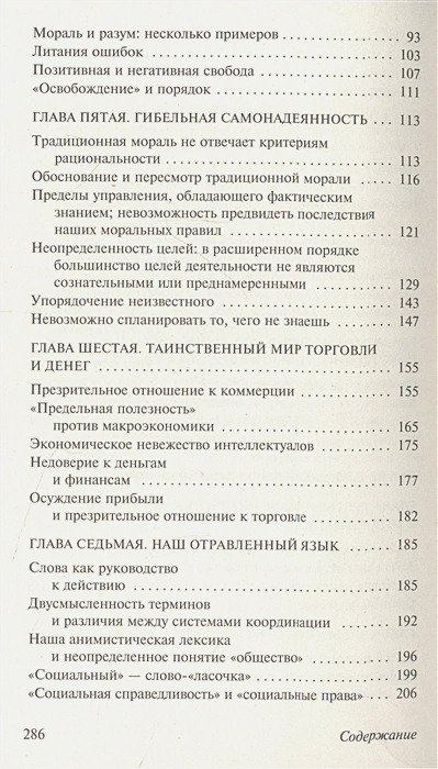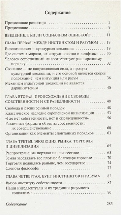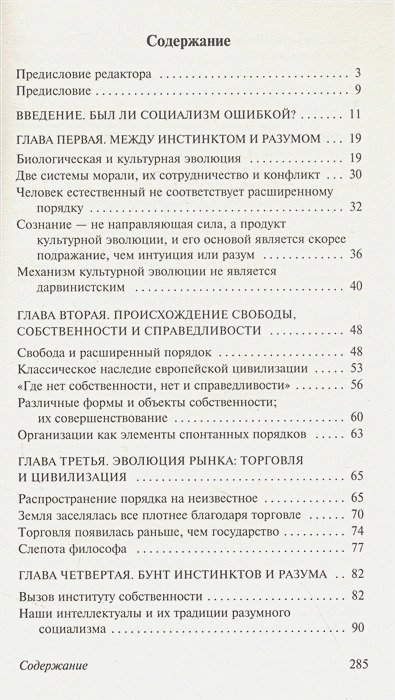 В книге «Пагубная самонадеянность» Фридрих Август фон Хайек, используя эволюционный подход с точки зрения экономиста, исследует природу, происхождение, отбор и развитие моральных принципов социализма и рыночных отношений. И подводит итог своим размышлениям над губительной природой социалистических идей в XIX и XX веках, а также над причинами, которые сделали неизбежным провал всех проектов построения социалистического общества.