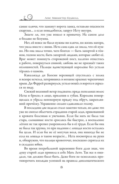 Мир и покой в Шалионе восстановлены благодаря усилиям венценосной четы Бергона и его жены Изелль. Боги благосклонны ко всем жителям древней страны, за исключением вдовствующей королевы Исты. Одержимая зловещими призраками прошлого, она пытается выскользнуть из-под надзора докучливых опекунов, для чего планирует отправиться в паломничество по святым местам. В этой поездке Иста надеется обрести душевный покой или хотя бы развеять мертвящую тоску. Но боги не дадут ей забыть о прошлом, более того: подарят второй шанс – обрести свою дорогу в жизни и, возможно, любовь, в которую она больше не имеет сил верить. Для этого надо совсем немного: дать отпор вражеской армии и сразить черное колдовство, перед которым оказались бессильны храбрейшие из мужчин...