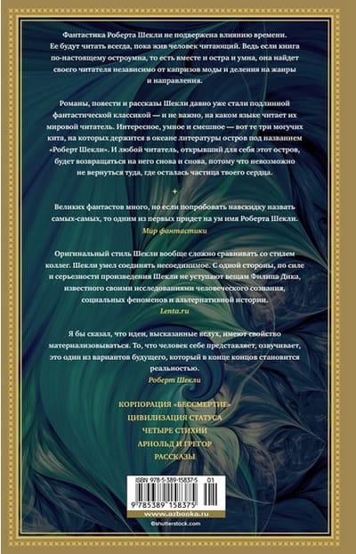 Фантастика Роберта Шекли не подвержена влиянию времени. Ее будут читать всегда, пока жив человек читающий. Ведь если книга по-настоящему остроумна, то есть вместе и остра и умна, она найдет своего читателя независимо от капризов моды и деления на жанры и направления. Романы, повести и рассказы Шекли давно уже стали подлинной фантастической классикой — и неважно, на каком языке читает их мировой читатель. Интересное, умное и смешное — вот те три могучих кита, на которых держится в океане литературы остров под названием «Роберт Шекли». И любой читатель, открывший для себя этот остров, будет возвращаться на него снова и снова, потому что невозможно не вернуться туда, где осталась частица твоего сердца.