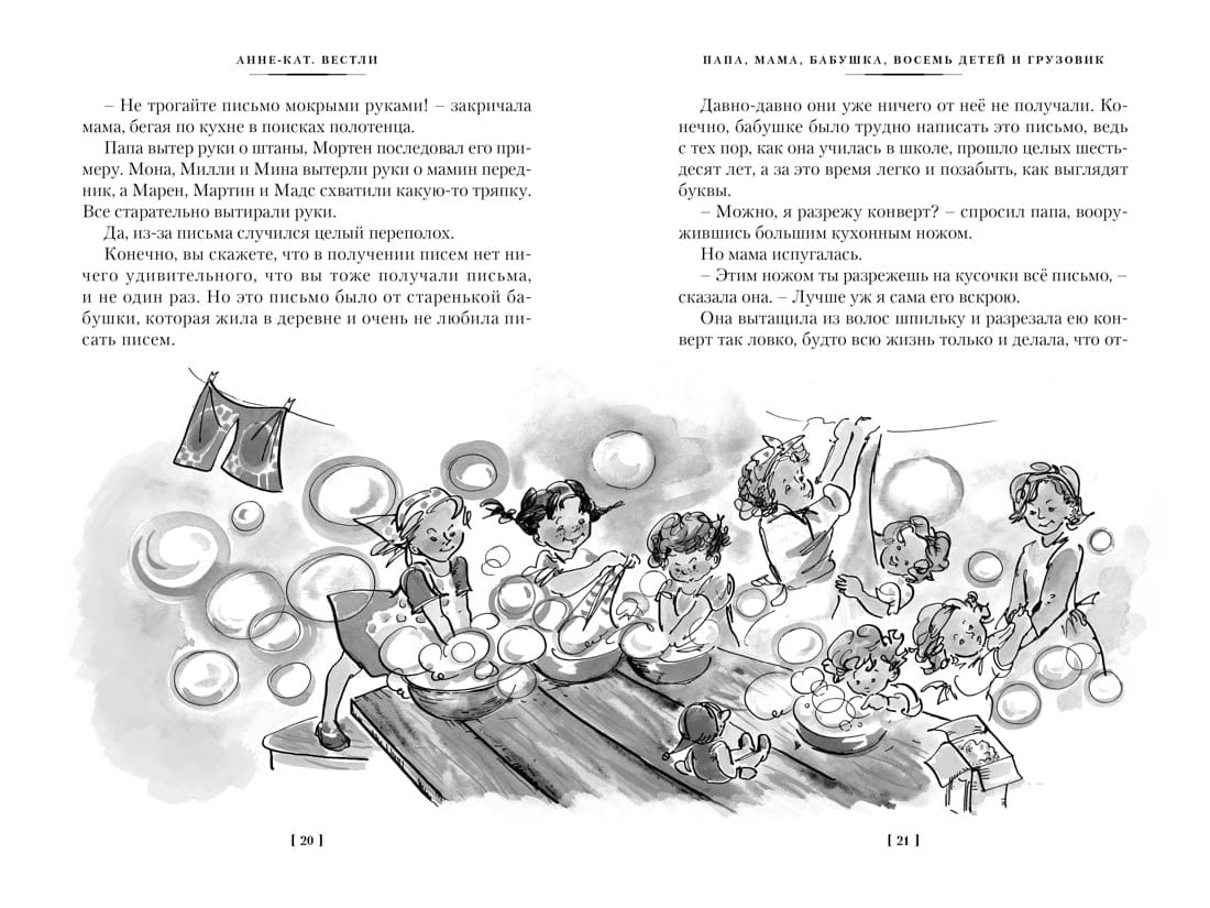 Анне-Катарина Вестли – известная писательница, которую ласково называют Бабушкой всех норвежских детей. Это неудивительно, ведь её произведения уже несколько десятков лет дарят читателям море смеха и радости, погружают в атмосферу семейного тепла и любви, а также показывают, насколько важна забота и поддержка со стороны близких. Жизнь в большой семье – всегда приключение. А что, если в этой семье живёт восемь детей, да ещё и в одной комнате? Здесь точно не обойтись без забавных повседневных ситуаций, совместных захватывающих историй и мудрых уроков!