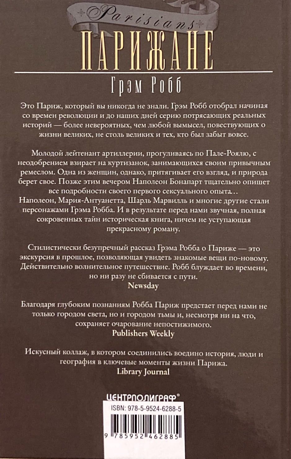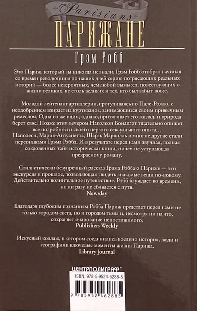 Удостоенный наград биограф, историк, страстный франкофил и талантливый рассказчик, Г. Робб приглашает читателя в познавательное путешествие сквозь века парижской истории, начиная с 1750 года и до наших дней. Книга представляет собой серию увлекательных новелл, основанных на реальных событиях из жизни самых разных жителей французской столицы — знаменитостей с мировым именем и людей совсем неизвестных: прелюбодеев, полицейских, убийц, проституток, революционеров, поэтов, солдат, шпионов. Фоном и главным действующим лицом в них является Париж — прославленный город, который автор показывает в непривычных ракурсах, чтобы читатель увидел его по-новому и открыл для себя заново.