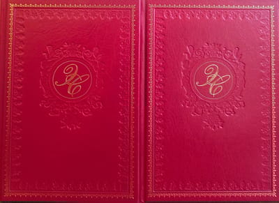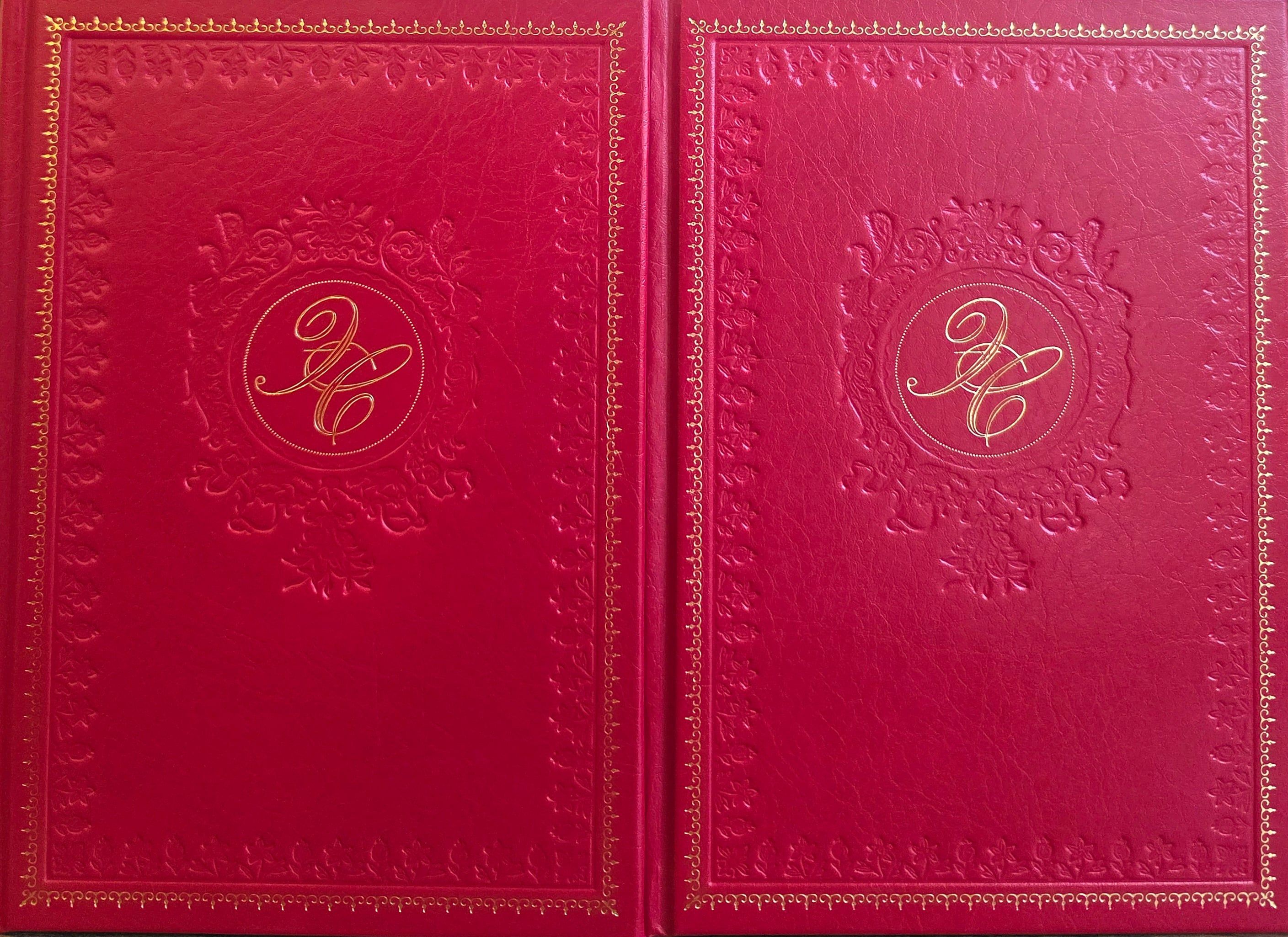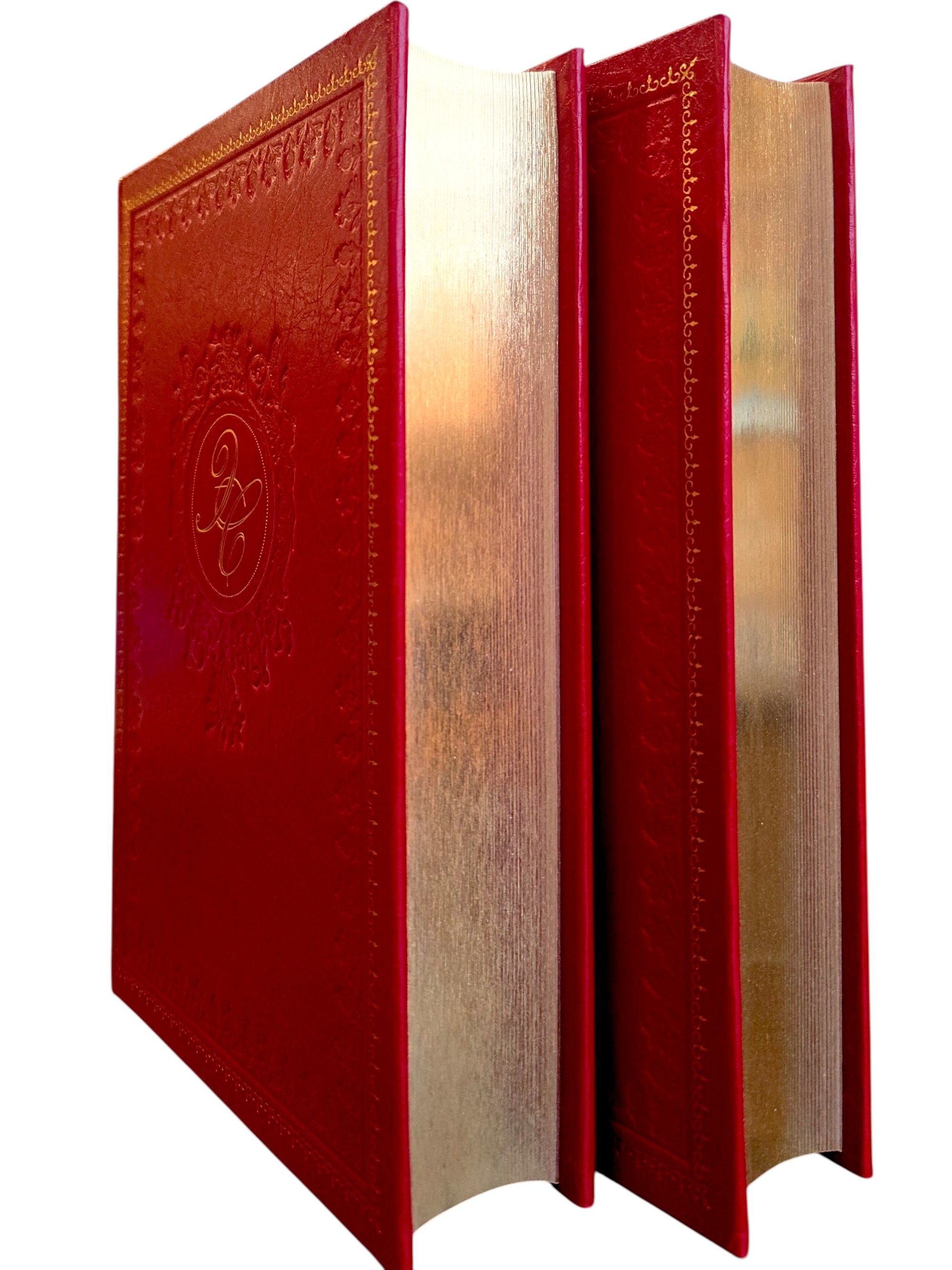 Оригинально оформленный подарочный комплект в кожаном переплете с трехсторонним золотым обрезом и ляссе.
