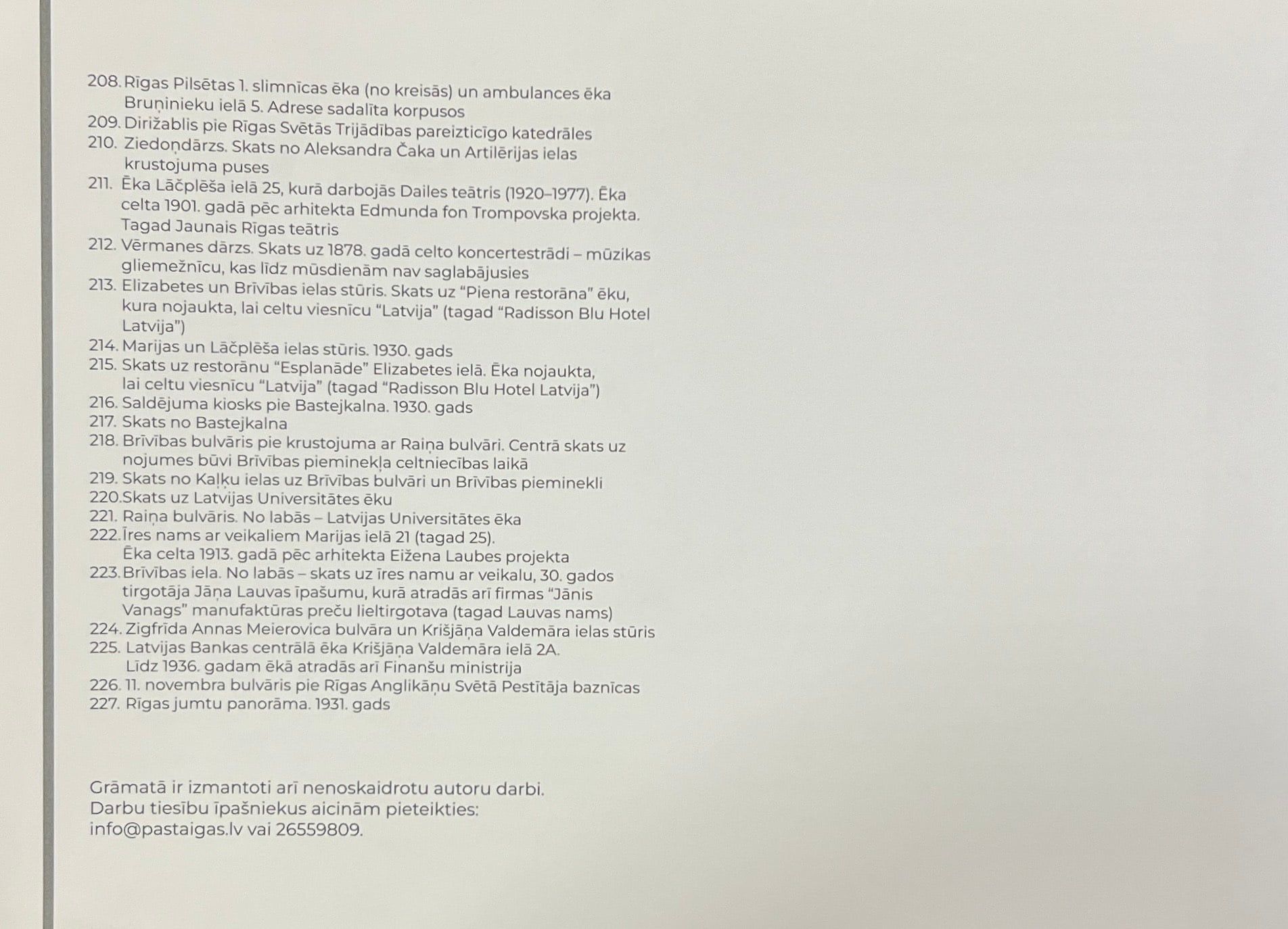 «Pastaiga pa skaisto Rīgu» ir pasaulē pirmais papildinātās realitātes vēsturisko fotogrāfiju albums ar iespēju redzēt arī mūsdienu attēlus un vēsturiskus video. Tajā iekļauti fotoattēli, kas aptver periodu starp diviem pasaules kariem.