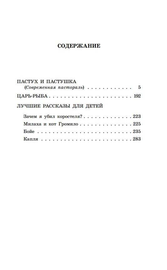 Виктор Петрович Астафьев (1924–2001) – русский писатель XX века, участник Великой Отечественной войны. Повесть «Пастух и пастушка» автор называет «современной пасторалью». Герои, привыкшие к мирной сельской жизни, невольно становятся участниками страшной войны. В сборник также вошли рассказы «Зачем я убил коростеля?», «Бойе», «Капля», «Милаха и кот Громило» и повесть «Царь-рыба».