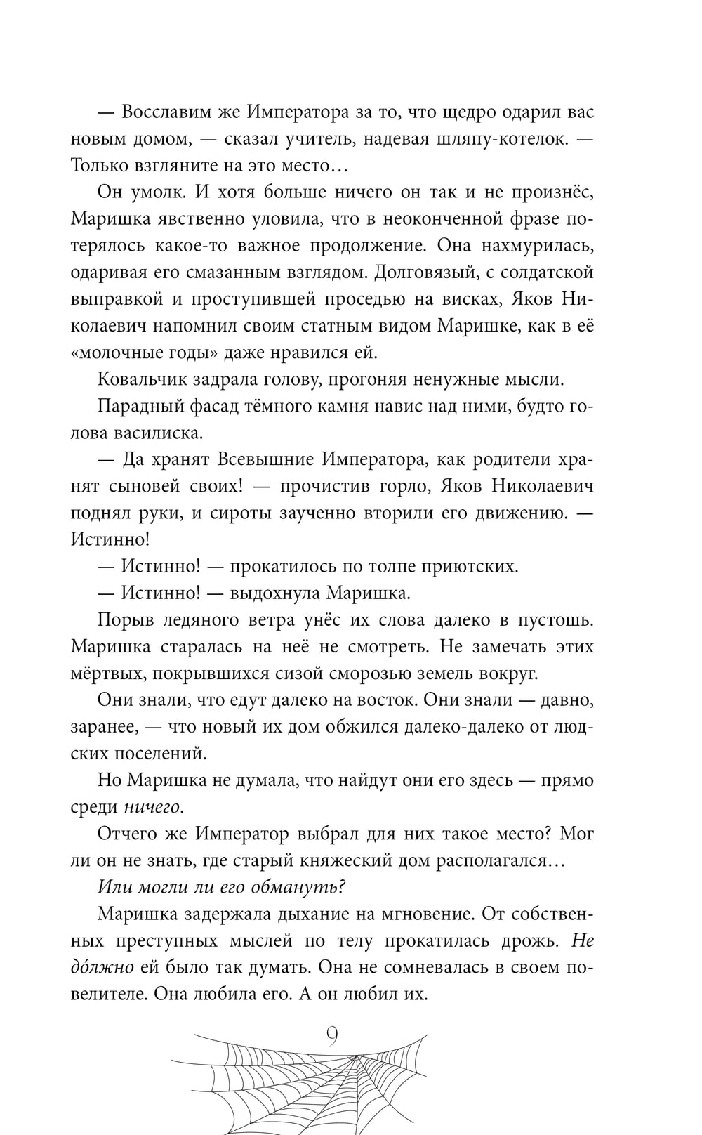 В полуразрушенный княжеский дом свозят сирот со всей Империи. Но дом этот странный и пугающий. Но Маришка будто единственная беспокоится об этом. Её голос тонет в голосах других, во внезапном скрипе половиц и движении оживших вещей. Другие сироты не хотят слушать, ведь каждый знает: Маришка — лгунья.