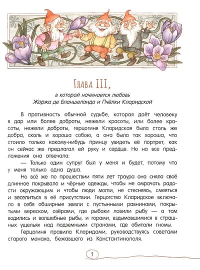 Эта книга рассказывает о далёких сказочных временах, о герцогстве Кларидском, расположенном на морском берегу. Здесь, в замке, живут юные герои - отважный Жорж и нежная, но сильная Пчёлка. Они неразлучны с самого детства и каждый день проводят вместе: рассматривают чудесные пейзажи с замковой башни, гуляют по просторам Кларид, а однажды отправляются в путешествие к озеру ундин. Так начинаются испытания и опасные приключения. Героям предстоит провести в разлуке долгие годы: Жорж попадает в плен к ундинам, а Пчёлке приходится остаться в подземелье гномов. Чтобы встретиться вновь, герои преодолеют множество препятствий и докажут, что их чувства по-настоящему глубоки и искренни. Кому понравится: всем, кто любит красивые и трогательные сказки с приключениями, волшебными героями, юмором и счастливым концом. Для детей 8-12 лет.