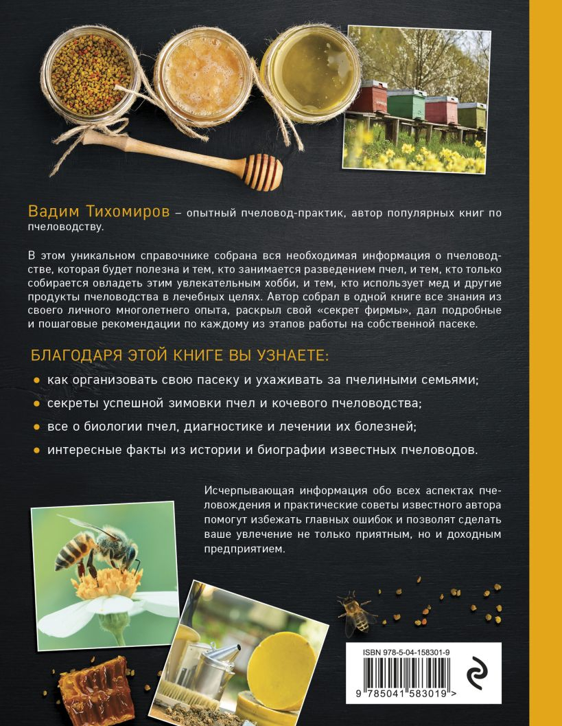 В этой уникальной энциклопедии собрана вся необходимая информация о пчеловодстве, которая будет полезна самому широкому кругу читателей – и тем, кто занимается разведением пчел, и тем, кто только собирается овладеть этим увлекательным хобби, и тем, кто ипользует мед и другие продукты пчеловодства в лечебных целях. Здесь содержатся исчерпывающие сведения не только по организации пасеки и уходу за пчелиными семьями, биологии пчел, диагностике и лечению их болезней, но и по истории пчеловождения, зимовке пчел и даже кочевому пчеловодству. Вы познакомитесь со всеми аспектами успешного пчеловодства, а практические советы известного автора помогут избежать главных ошибок, которые позволят сделать ваше увлечение пчеловодством не только приятным, но и доходным предприятием.