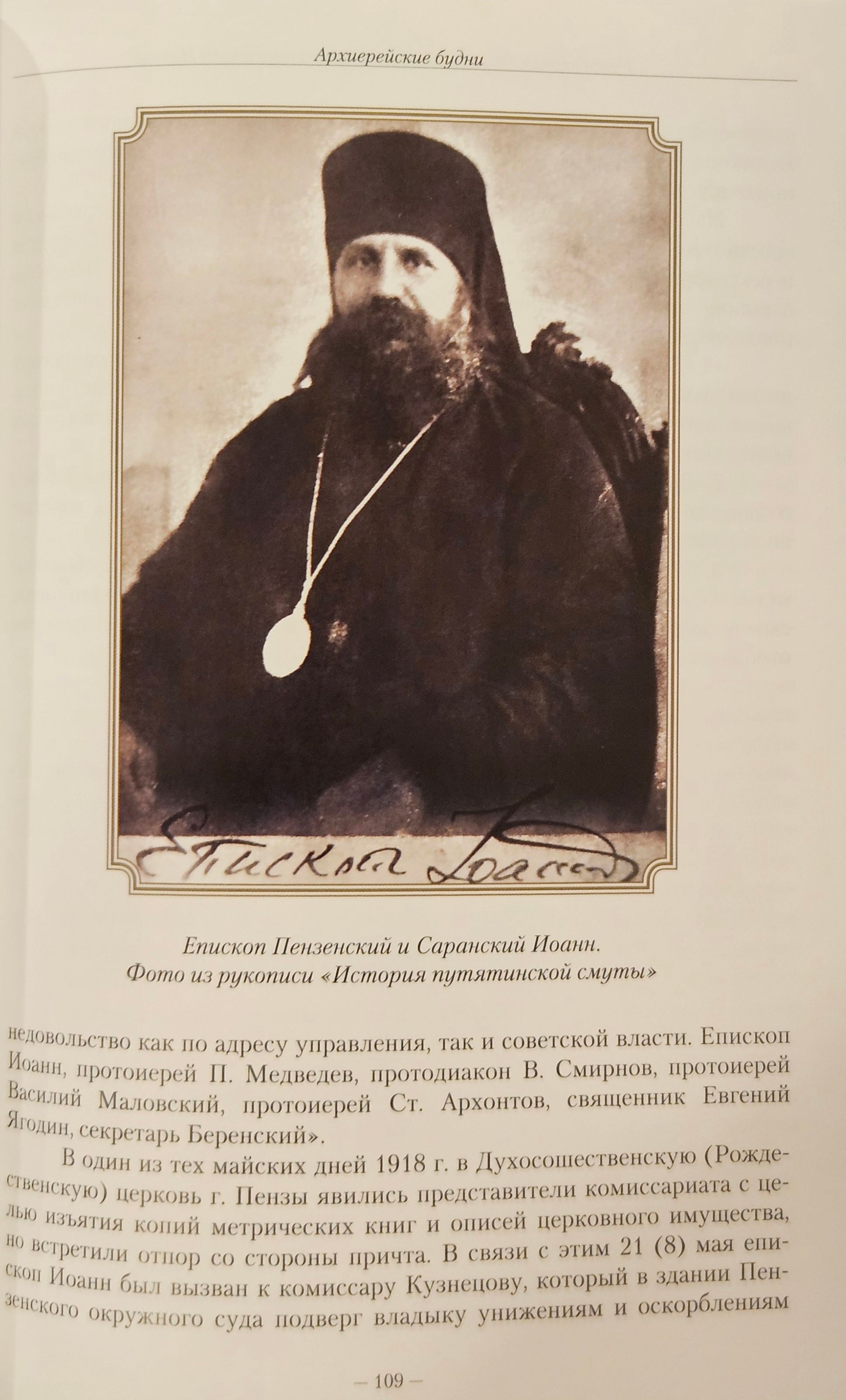 Документальное повествование Сергея Зелева и Киры Аристовой «Священномученик Иоанн (Поммер). Пензенский период служения (1918-1921)» основано на большом массиве консисторских документов, следственных материалов и воспоминаний. Авторы постарались отразить трехлетний период пребывания выдающегося иерарха Русской Православной Церкви XX столетия в мятежной Пензе – период крайне сложный и важный в его жизни, составить отчетливый портрет святителя, отметить его редкие духовные качества и дарования. Особая ценность книги – судьбы людей из окружения архиепископа Иоанна (Поммера), их переписка с владыкой, а также сведения о деятельности созданного им Братства православных христиан.
