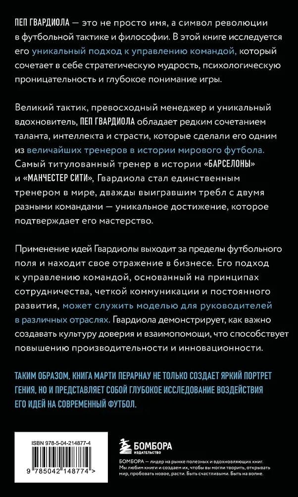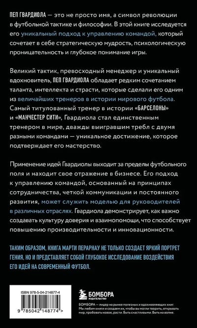 Пеп Гвардиола — это не просто имя, а символ революции в футбольной тактике и философии. В этой книге исследуется его уникальный подход к управлению командой, который сочетает в себе стратегическую мудрость, психологическую проницательность и глубокое понимание игры.