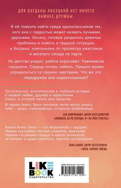 Для Богданы Лисецкой нет ничего важнее дружбы. И ей повезло найти среди одноклассников тех, кого она с гордостью может назвать лучшими друзьями. Оксану, готовую разделить девичьи проблемы и помочь в трудной ситуации, и Богдана, компаньона по просмотру ужастиков и веселого соседа по парте. Но детство уходит, ребята взрослеют. Равновесие нарушено. Сердца готовы любить. Пришло время определиться со своими чувствами. Что же это: передружба или недоотношения?