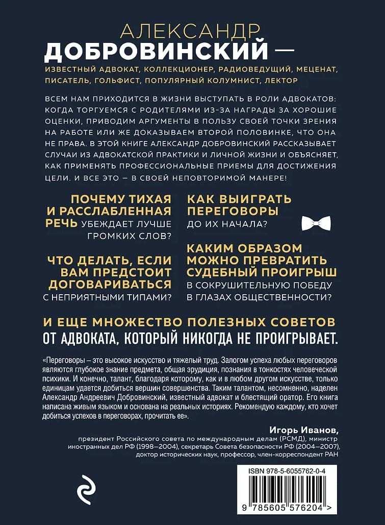 Всем нам приходится в жизни выступать в роли адвокатов: когда торгуемся с родителями из-за награды за хорошие оценки, приводим аргументы в пользу своей точки зрения на работе или же доказываем второй половинке, что она не права. В этой книге Александр Добровинский рассказывает случаи из адвокатской практики и личной жизни и объясняет, как применять профессиональные приемы для достижения цели. И все это – в своей неповторимой манере!