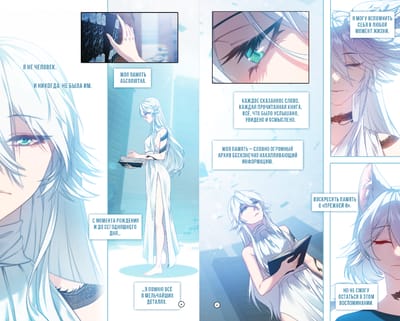 Вас ждёт книга уникального формата, специально подобранного под публикацию вебтунов на бумаге, а также невероятная обложка с эффектом «вельвет» с лакированными элементами и золотой фольгой.