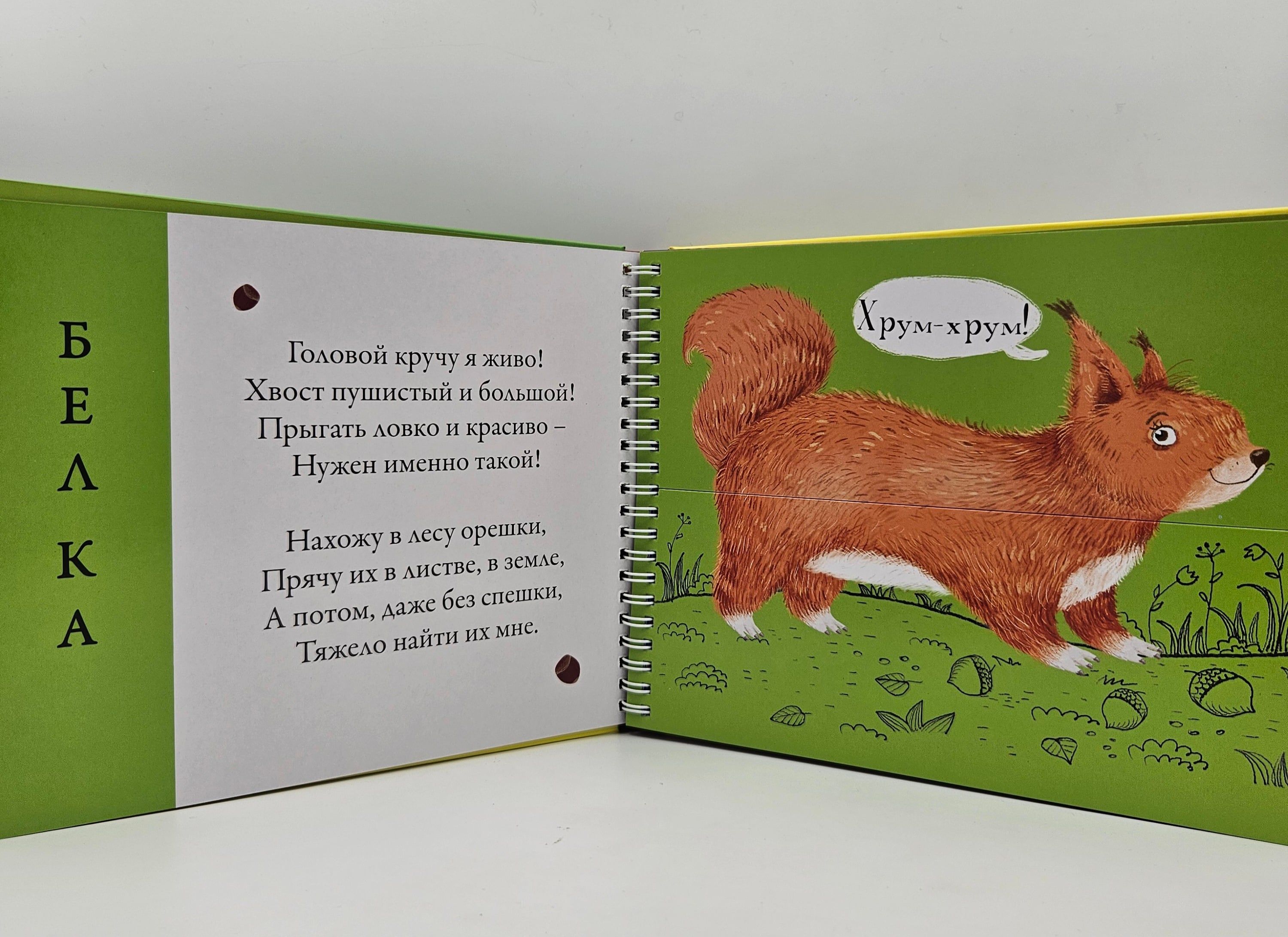 На каждом развороте этой удивительной книги справа находится изображение дикого животного, слева – его стихотворное описание, состоящее из двух четверостиший, в одном из которых описывается внешний вид животного, во втором – его повадки.