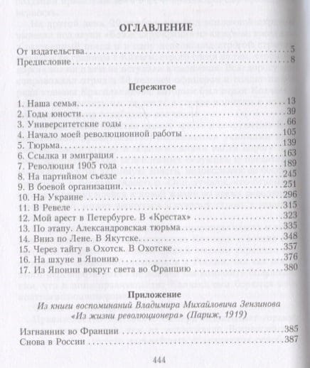 В.М. Зензинов написал две книги воспоминаний «Из жизни революционера» и «Пережитое». Над первой книгой он работал в 1919 году, посте того, как адмирал Колчак выслал его из России. Вторая книга - «Пережитое» - писалась на склоне лет, в эмиграции. В ней В.М. Зензинов более полно описывает исторические факты, а также личные подробности... По повествование обрывается па событиях 1908 года, связанных с разоблачением провокатора Азефа. О происходящем позже - о годах Первой мировой войны, о Февральской революции, Октябре 1917 года. Гражданской войне можно узнать из книги «Из жизни революционера», фрагменты которой включены в приложение к данному изданию.