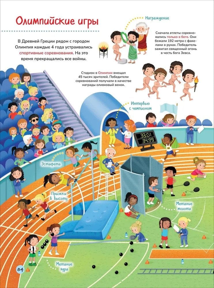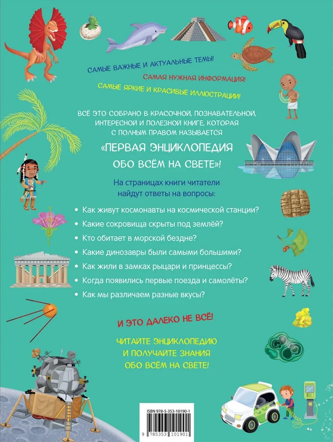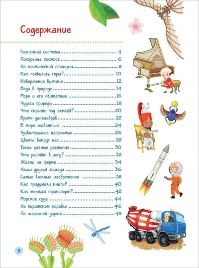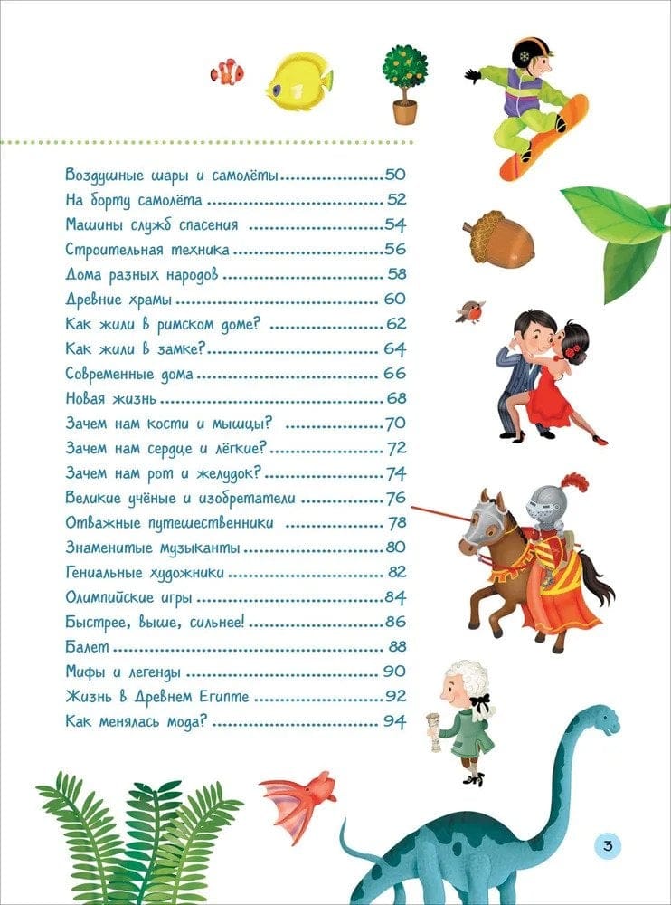 Красочно иллюстрированная энциклопедия познакомит детей с географией, биологией, космонавтикой, техникой, архитектурой, анатомией, историей, спортом, искусством и многими другими сферами знаний. Рассматривая рисунки со множеством деталей и читая объяснения к ним, дети незаметно для себя выучат много новых понятий и получат представление о разных областях науки и повседневной жизни.