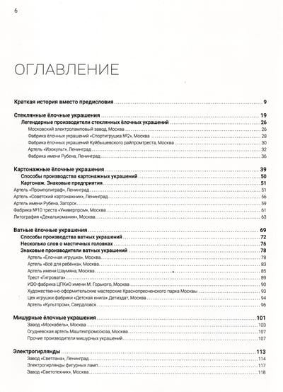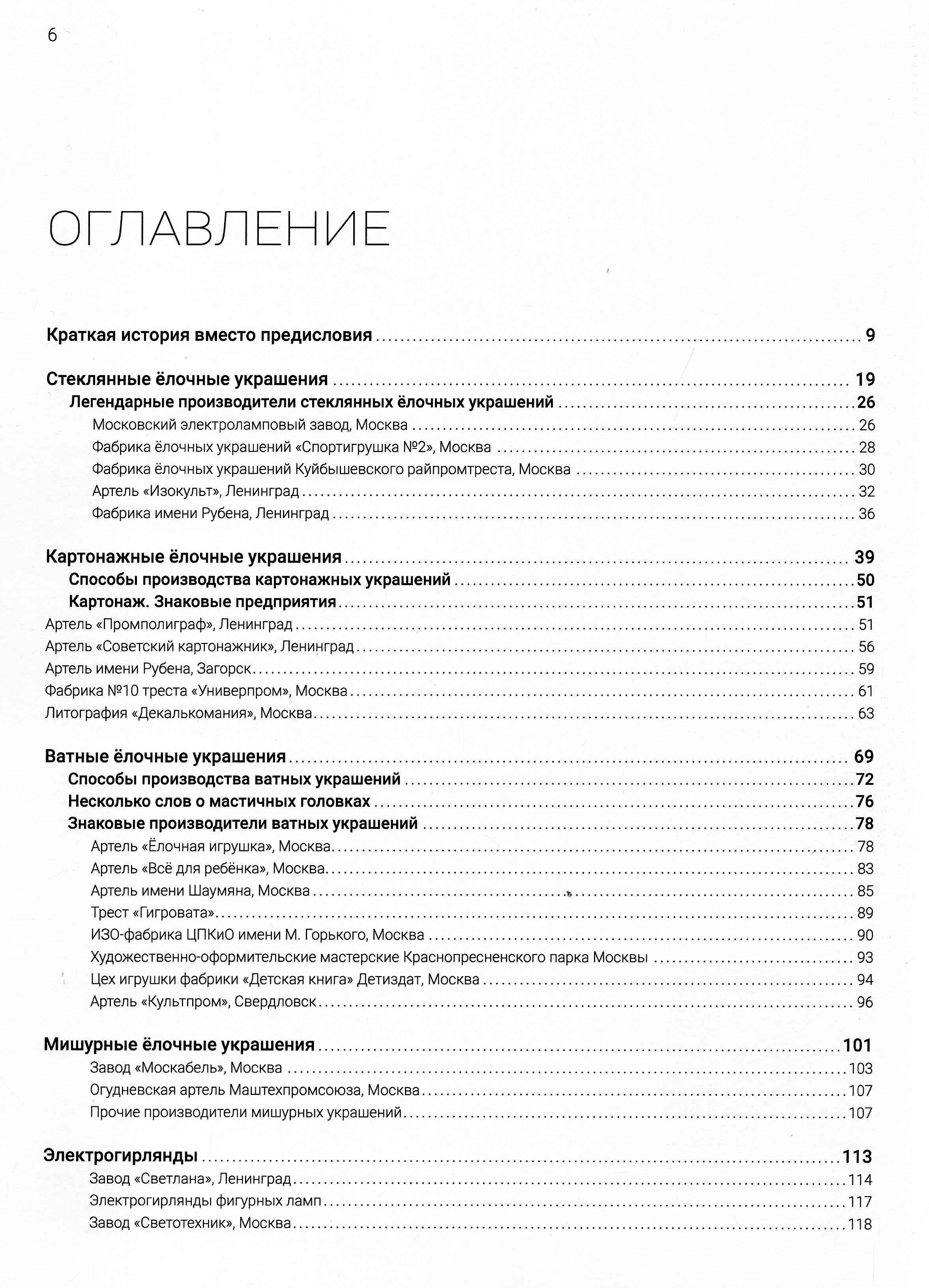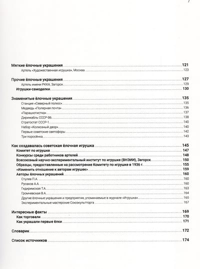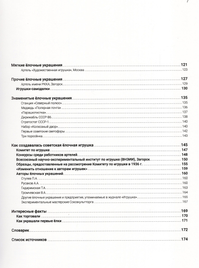 В книге описана хронология событий в создании советской елочной игрушки. Указаны основные группы елочных украшений. А также отмечены некоторые производители, оказавшие огромное влияние на развитие советской елочной игрушки.