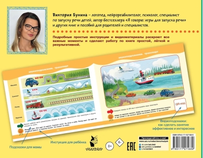 Современному ребёнку зачастую нужна помощь для активизации речи. В этом ярком и увлекательном альбоме представлена методика запуска речи, разработанная опытным логопедом Викторией Буниной. Уже более 10 тысяч родителей благодаря занятиям по этой методике услышали первые слова и фразы своих малышей. Специальные игровые упражнения сопровождаются подробными методическими подсказками, чтобы результат был максимально эффективным. Доступ к дополнительной информации по QR-кодам (нормы развития ребёнка до 7 лет и др.) превращает данное издание в настольную книгу для родителей и специалистов.