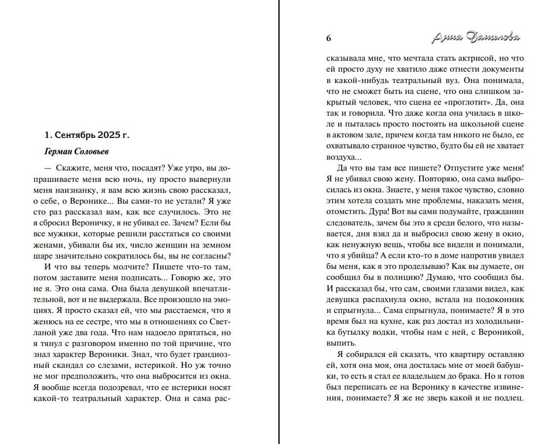 Герман Соловьев утверждает, что не убивал свою жену: да, он хотел с ней развестись, но не мог вытолкнуть ее из окна, Вероника прыгнула сама. На следующее утро на том же месте находят тело другой девушки, которая на первый взгляд никак не связана с Вероникой.