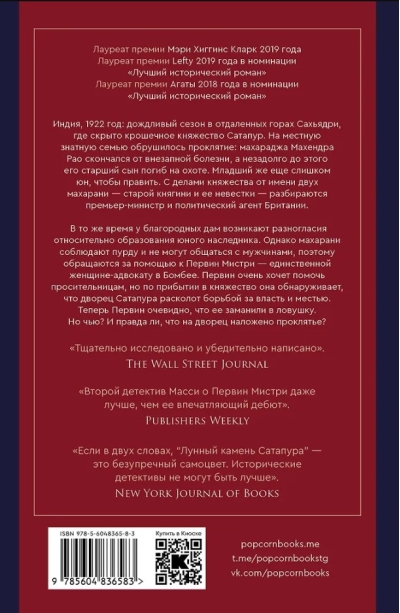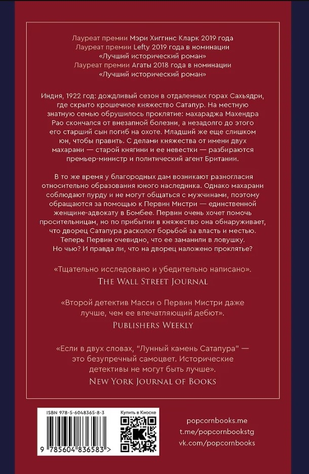 Индия, 1922 год: дождливый сезон в отдаленных горах Сахьядри, где скрыто крошечное княжество Сатапур. На местную знатную семью обрушилось проклятие: махараджа Махендра Рао скончался от внезапной болезни, а незадолго до этого его старший сын погиб на охоте. Младший же еще слишком юн, чтобы править. С делами княжества от имени двух махарани — старой княгини и ее невестки — разбираются премьер-министр и политический агент Британии. В то же время у благородных дам возникают разногласия относительно образования юного наследника. Однако махарани соблюдают пурду и не могут общаться с мужчинами, поэтому обращаются за помощью к Первин Мистри — единственной женщине-адвокату в Бомбее. Первин очень хочет помочь просительницам, но по прибытии в княжество она обнаруживает, что дворец Сатапура расколот борьбой за власть и местью. Теперь Первин очевидно, что ее заманили в ловушку. Но чью? И правда ли, что на дворец наложено проклятье?
