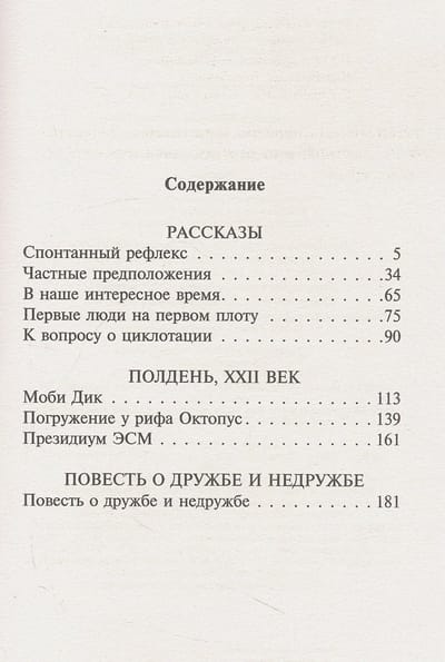 Сборник составляют «Повесть о Дружбе и Недружбе» и малоизвестные рассказы братьев Стругацких, в том числе новеллы, которые должны были войти в «Полдень, ХХII век», но по тем или иным причинам стали самостоятельными произведениями.