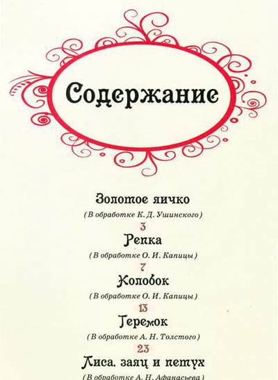 В сборник вошли русские народные сказки из программы самого первого детского чтения: "Золотое яичко", "Репка", "Колобок", "Теремок", "Петушок-золотой гребешок" и др. Тексты представлены в обработке А. Толстого, А. Афанасьева, М. Булатова, О. Капицы и др. Яркие иллюстрации на каждой странице. Крупный шрифт. Книга предназначена для чтения взрослыми детям.