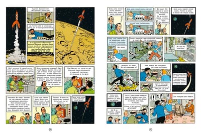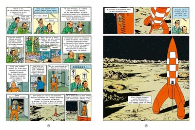 Замысел космического приключения возник у Эрже в середине 1940-х и оказался слишком масштабным для одного тома. Первая часть лунной дилогии «Курс на Луну» была опубликована в 1950 году в журнале Tintin. А в 1954 году вышло продолжение «Первые шаги по Луне». В русском издании обе части для удобства помечены желтыми корешками. Эрже – псевдоним бельгийского художника Жоржа Реми (1907–1983), автора Тинтина. Цикл о приключениях храброго репортера с задорным хохолком и его верного друга белоснежного фокстерьера Милу переведен на 110 языков, признан во всем мире классикой жанра комиксов и по-прежнему завоевывает сердца читателей от 10 до 99.