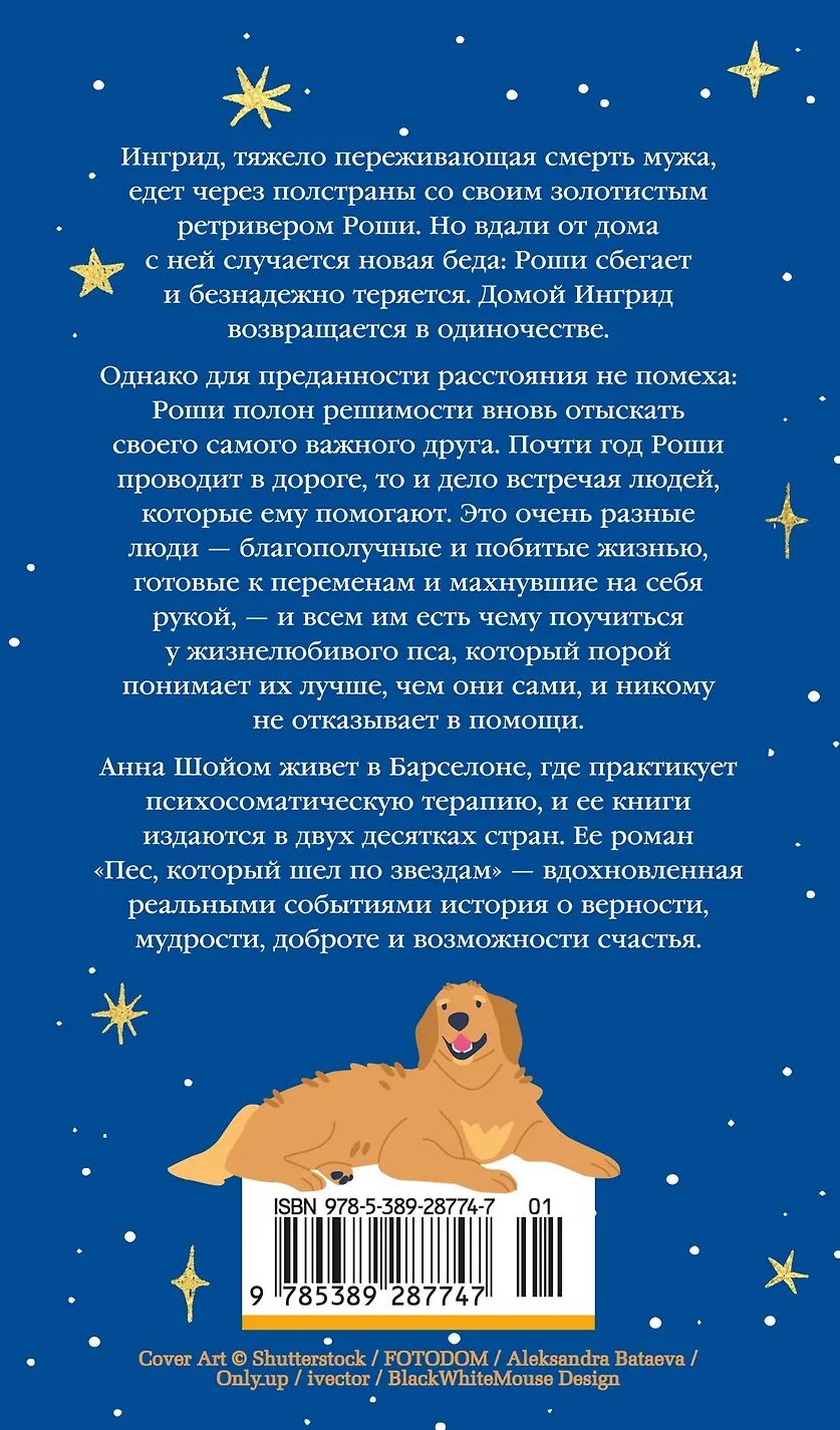 Анна Шойом живет в Барселоне, где практикует психосоматическую терапию. Ее первый роман «Нэко-кафе. Правила жизни кошек» переведен на двадцать языков. Второй роман, «Пес, который шел по звездам», уже издающийся в четырнадцати странах, — вдохновленная реальными событиями история о верности, мудрости, доброте и возможности счастья.